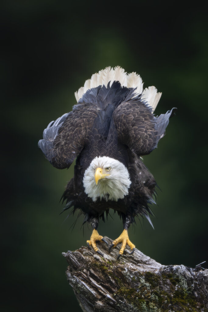 A bald eagle prepares to take flight